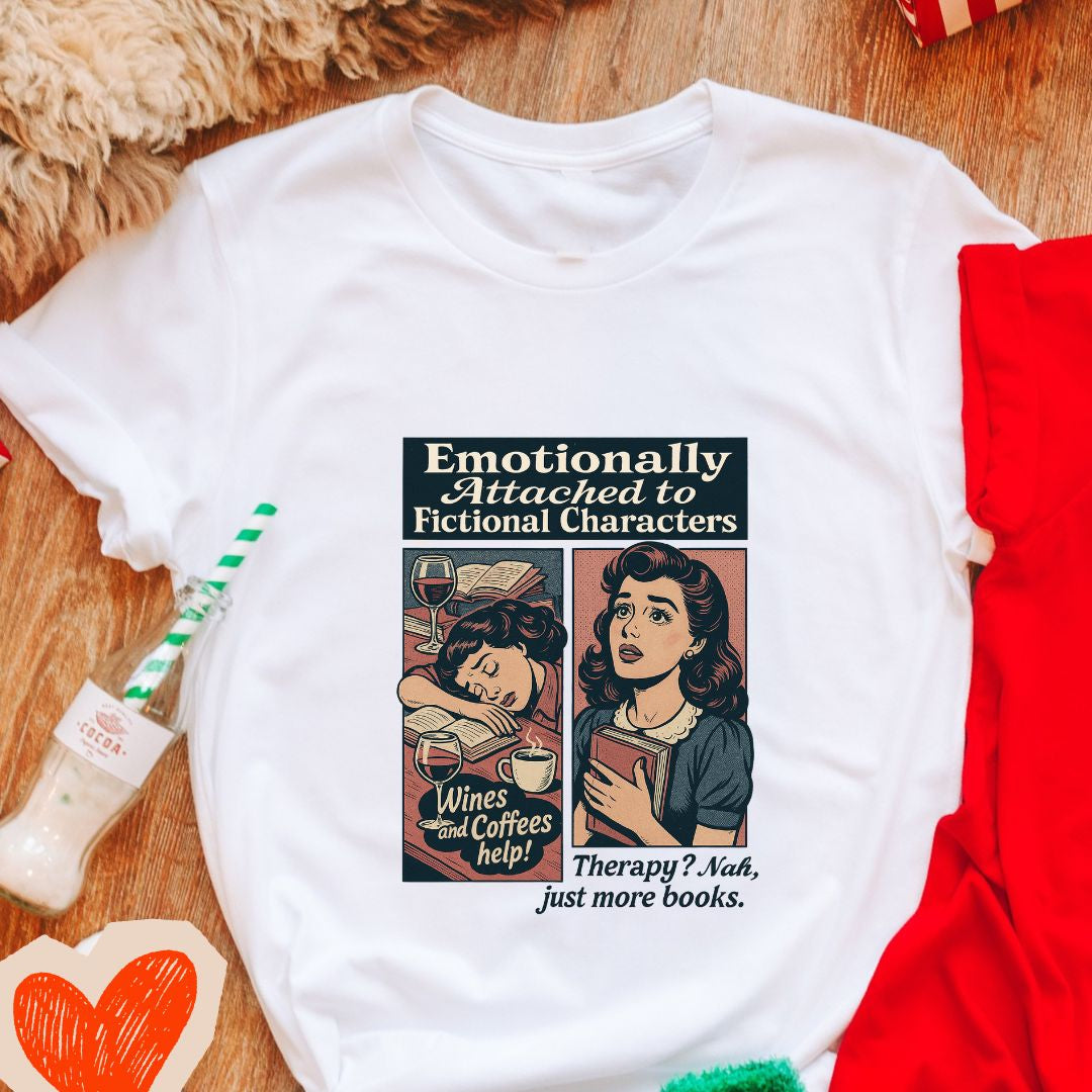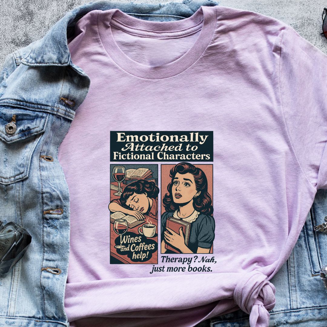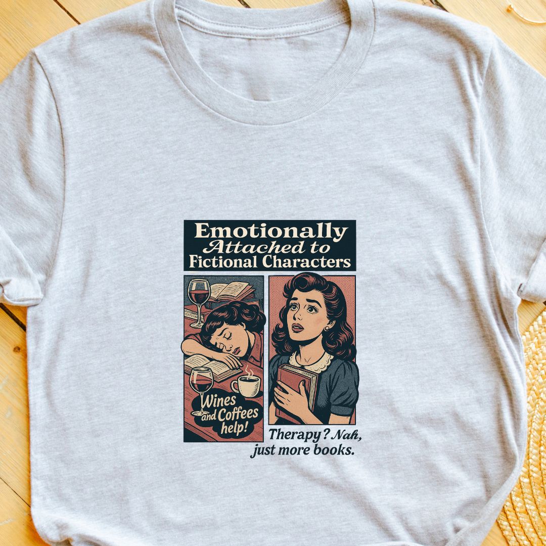 Wear your heart on your sleeve (literally)—add the "Emotionally Attached to Fictional Characters" tee to your cart and celebrate every feeling your favorite books have given you. 💔📚✨