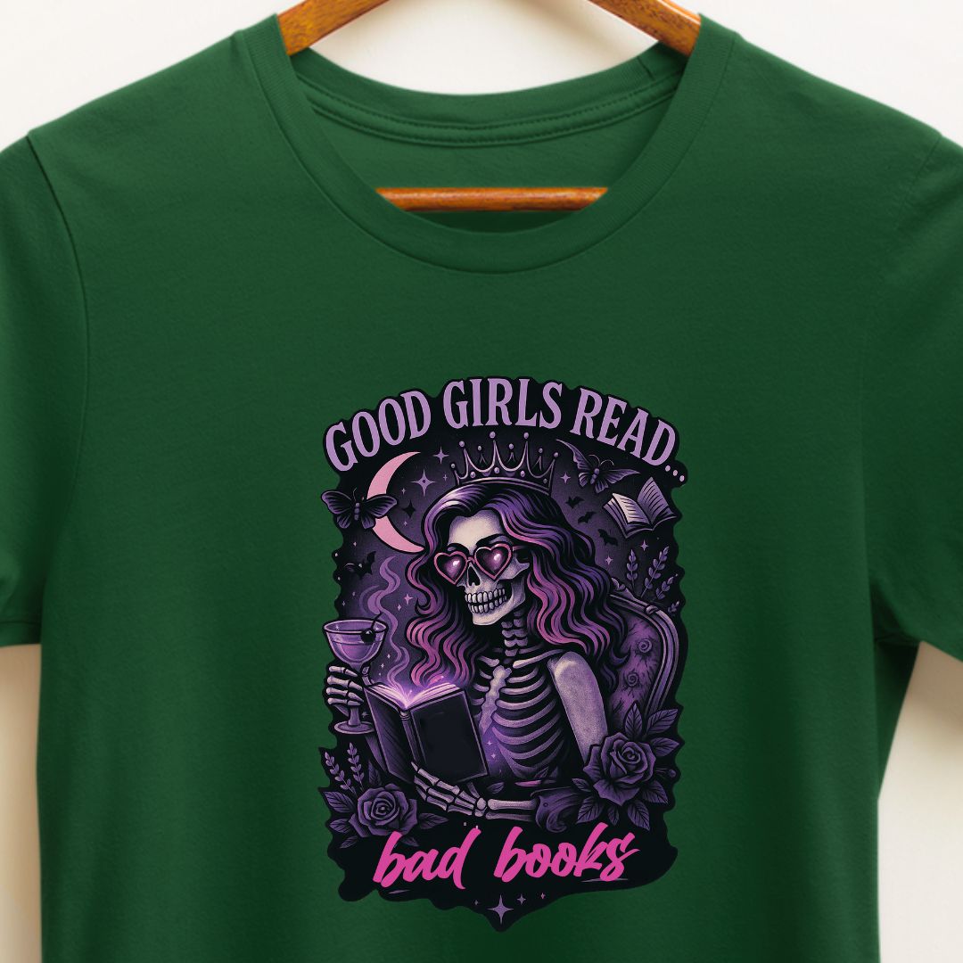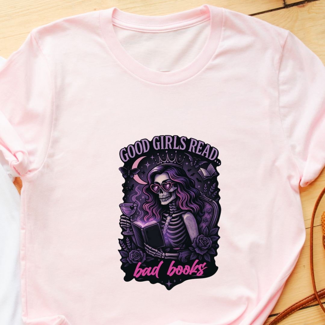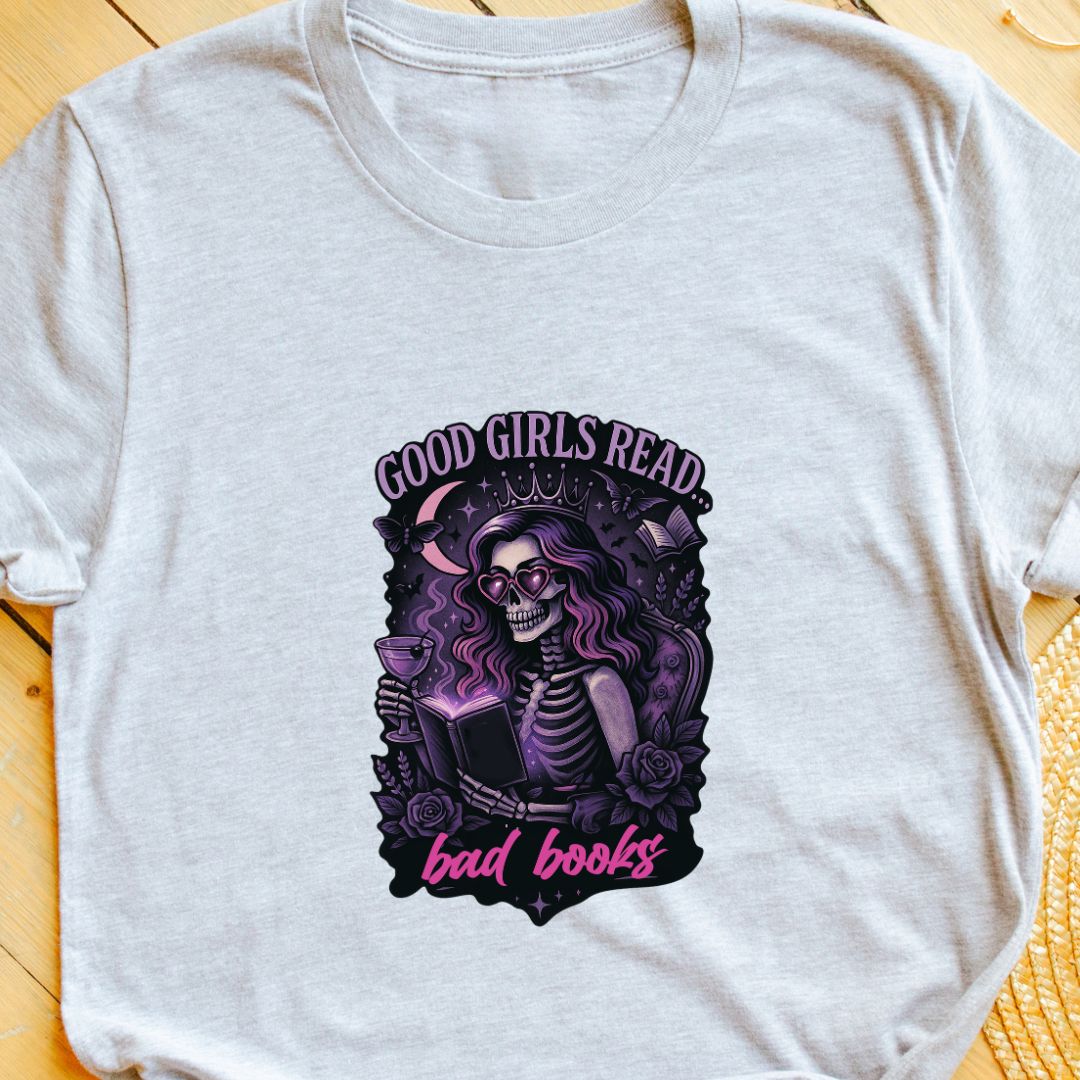 Own your reading taste—add the "Good Girls Read Bad Books" tee to your cart and wear your literary rebellion proudly. 📚✨