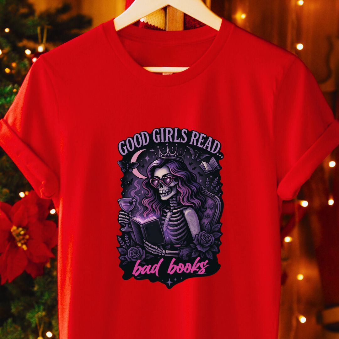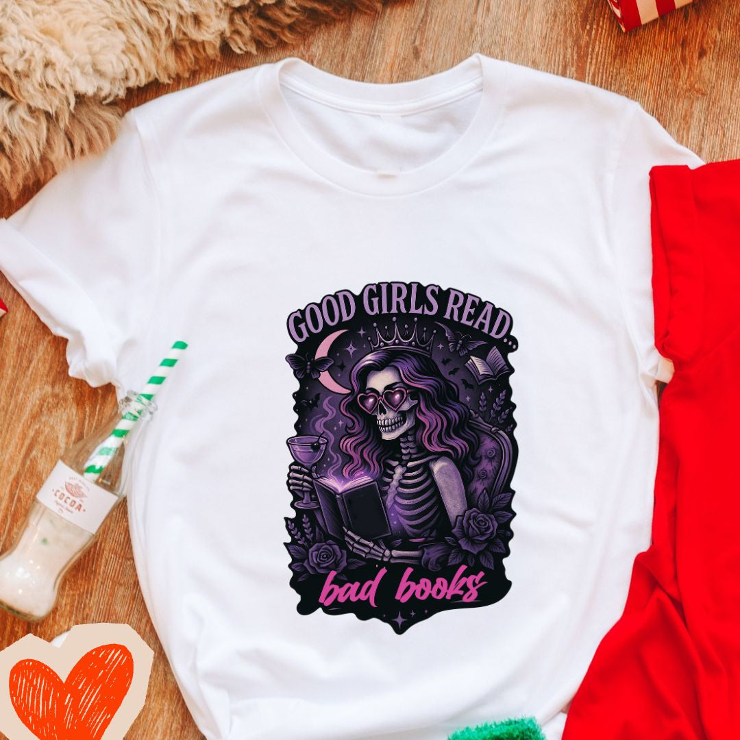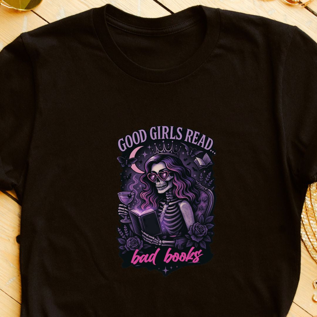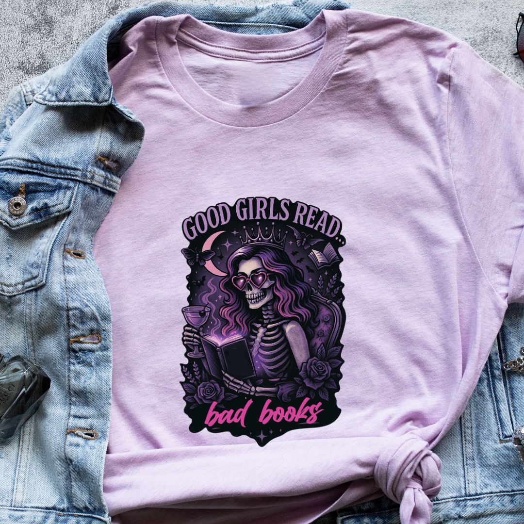 Own your reading taste—add the "Good Girls Read Bad Books" tee to your cart and wear your literary rebellion proudly. 📚✨