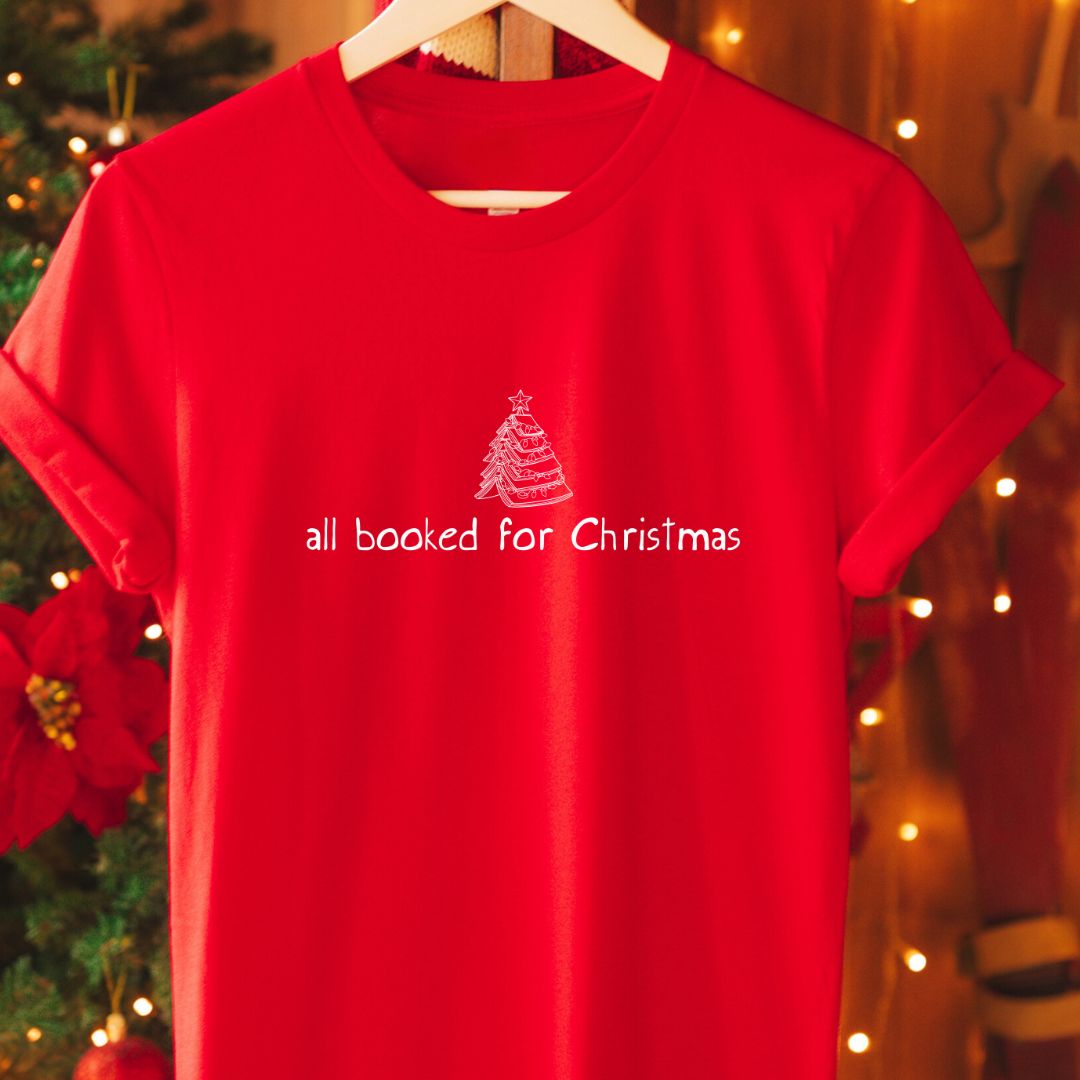 All Booked For Christmas T-Shirt | Book Lover Holiday Gift