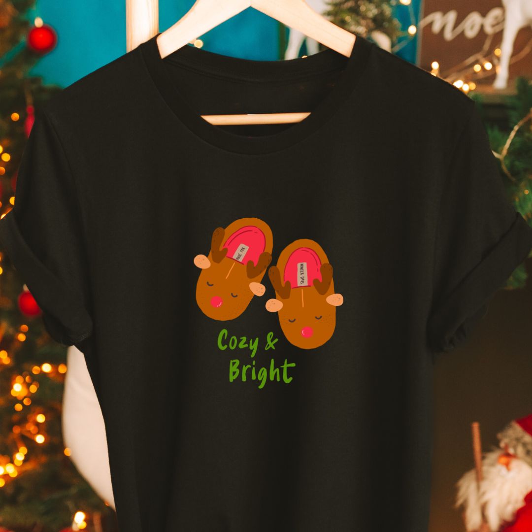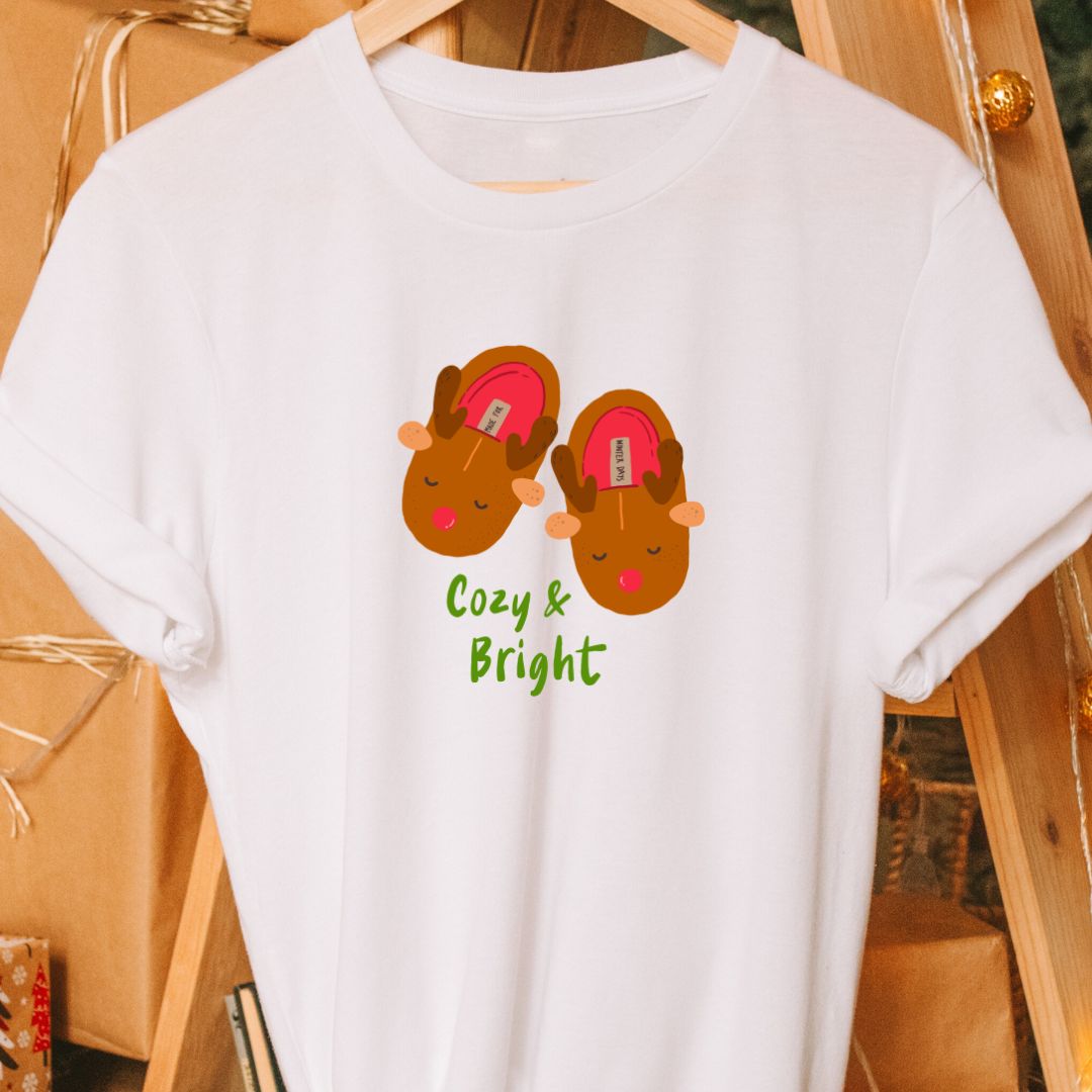 Cozy & Bright Christmas T-Shirt | Festive Slipper Tee