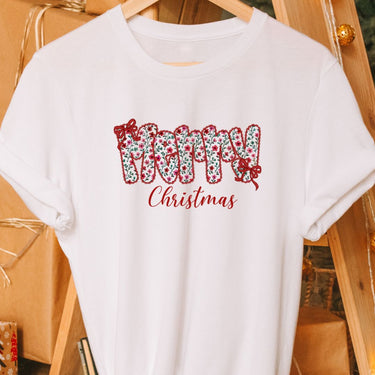 Merry Christmas Floral T-Shirt | Cute Feminine Holiday Tee