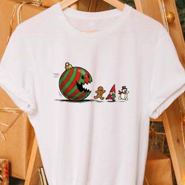 Funny Christmas T-Shirt | Christmas Ball Pac-Man Holiday Tee