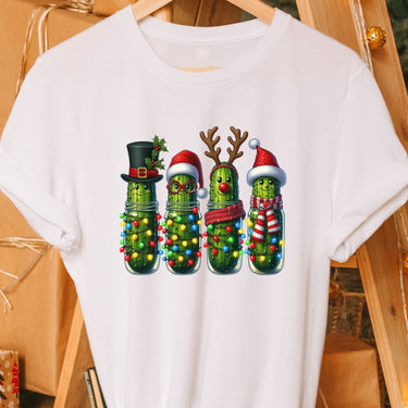 Forget the figgy pudding—this year, it's all about the festive pickle! Our hilarious Christmas pickle t-shirt is a tribute to everyone's favorite briny snack, all dressed up and ready to relish the holiday season. Featuring a team of jolly pickles decked out in Santa hats, cozy scarves, and tangled in Christmas lights, this tee is your official uniform for spreading quirky cheer.