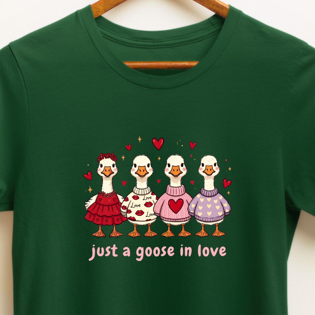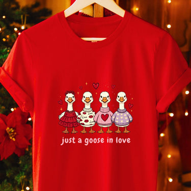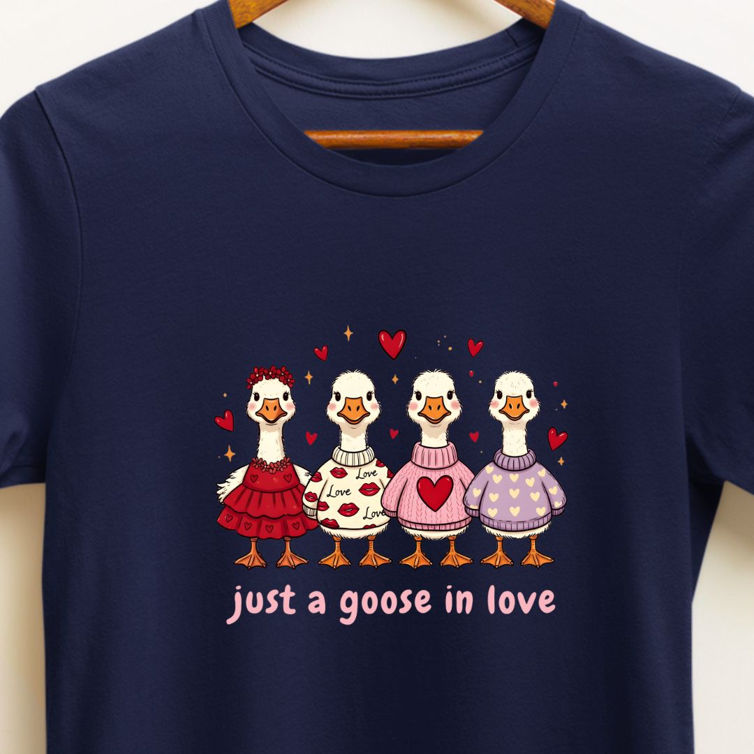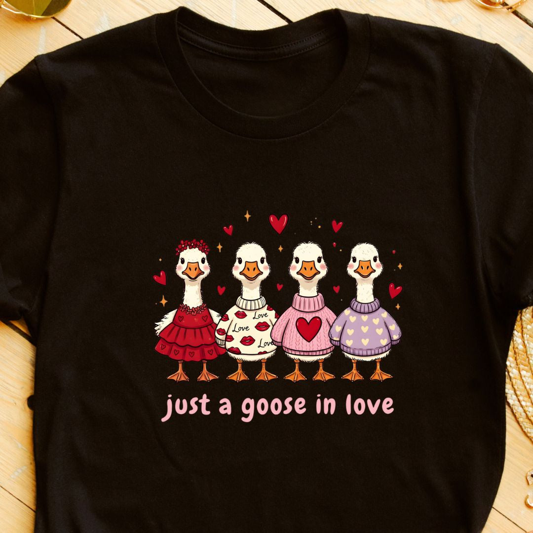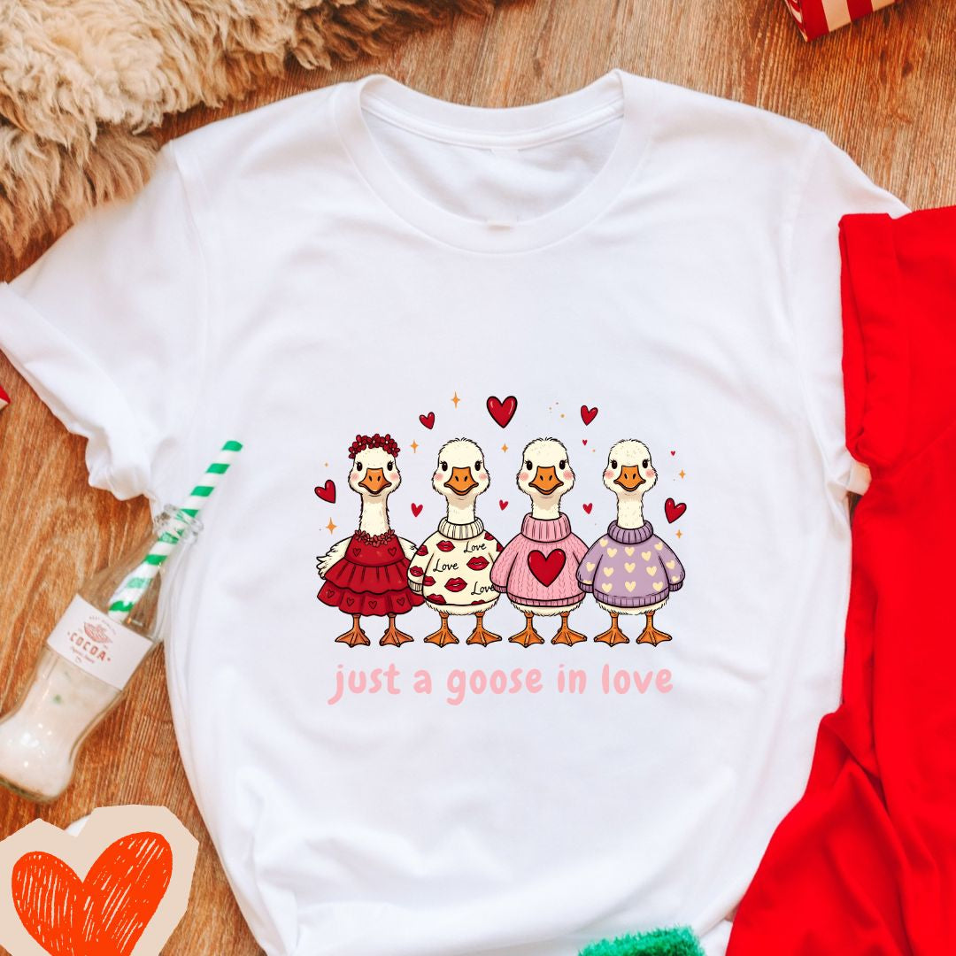 Just a Goose in Love T‑Shirt — Cute Valentine's Day Tee